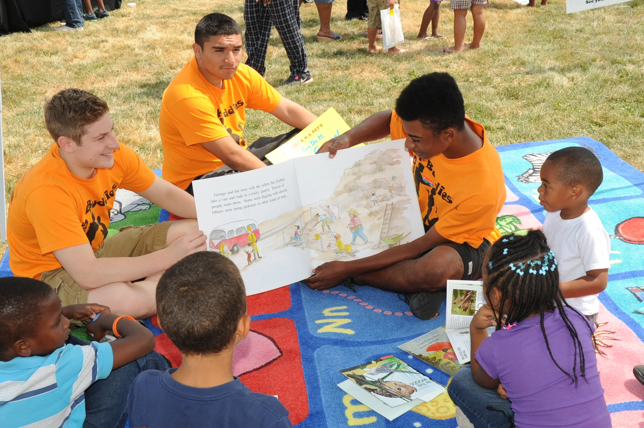 Schools, community centers and other locations near lower-income youth, who tend to lack access to books at home, serve as sites for our lively, interactive giveaway events where reading is always presented as BIG FUN! Local celebrities, leaders and athletes support our special programs -- so you never know who you might see! Volunteers are always needed and appreciated."