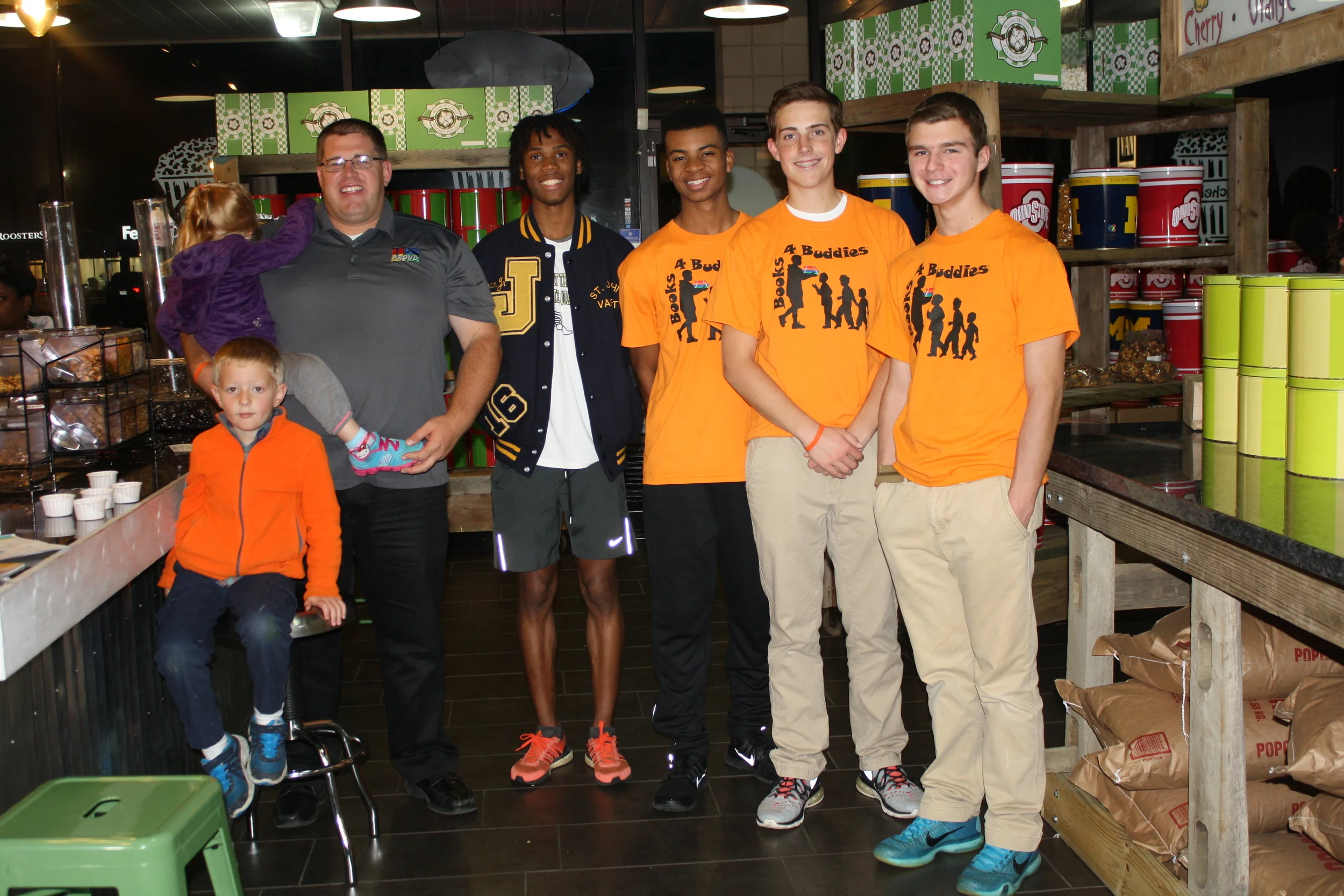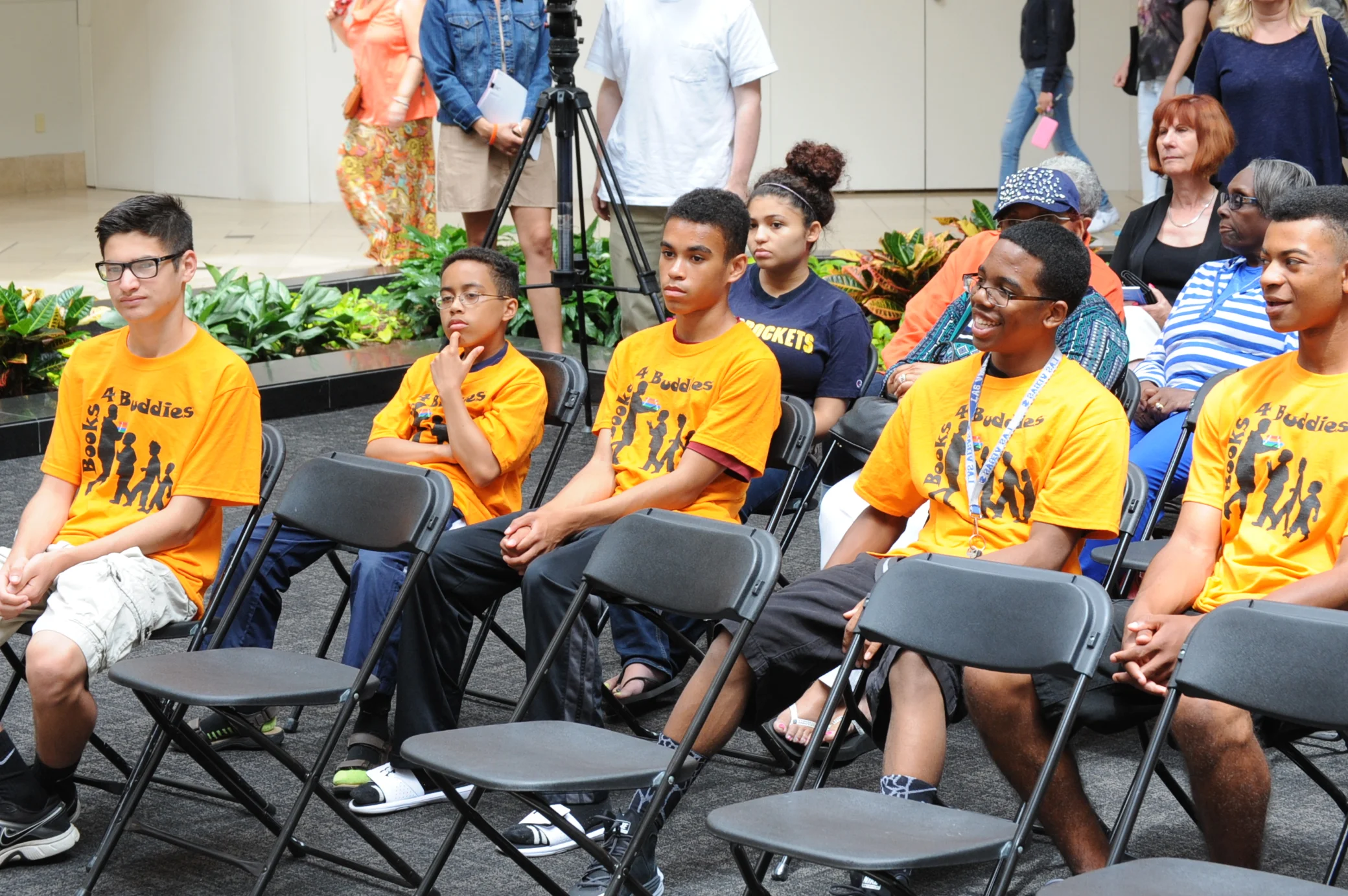 Also present, clad in their traditional orange T-shirts, were the Book Ambassadors. The 25 Ambassadors, a diverse group from area high schools, promote the mission of Books 4 Buddies and help improve literacy skills among boys. They also serve as role models and are already young community leaders.